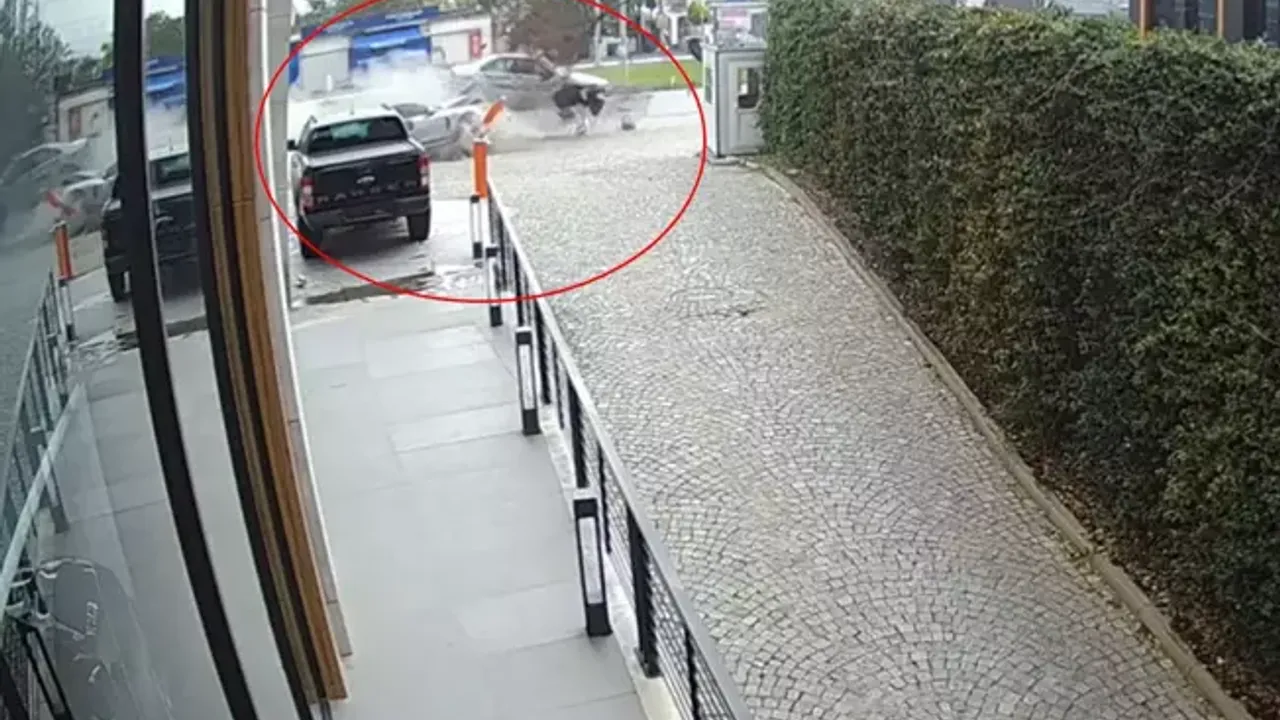Kaza, saat 12.00 sıralarında Mudanya-Bademli Kavşağı mevkiinde meydana geldi. Bursa yönünde seyir halinde olan 16 YG 733 plakalı otomobilin sürücüsü K.E. (36), direksiyon hakimiyetini kaybederek yol kenarındaki otomobil satış firmasının otoparkına girdi. Otomobil, burada park halinde bulunan 16 BM 498 plakalı lüks araca çarptı.