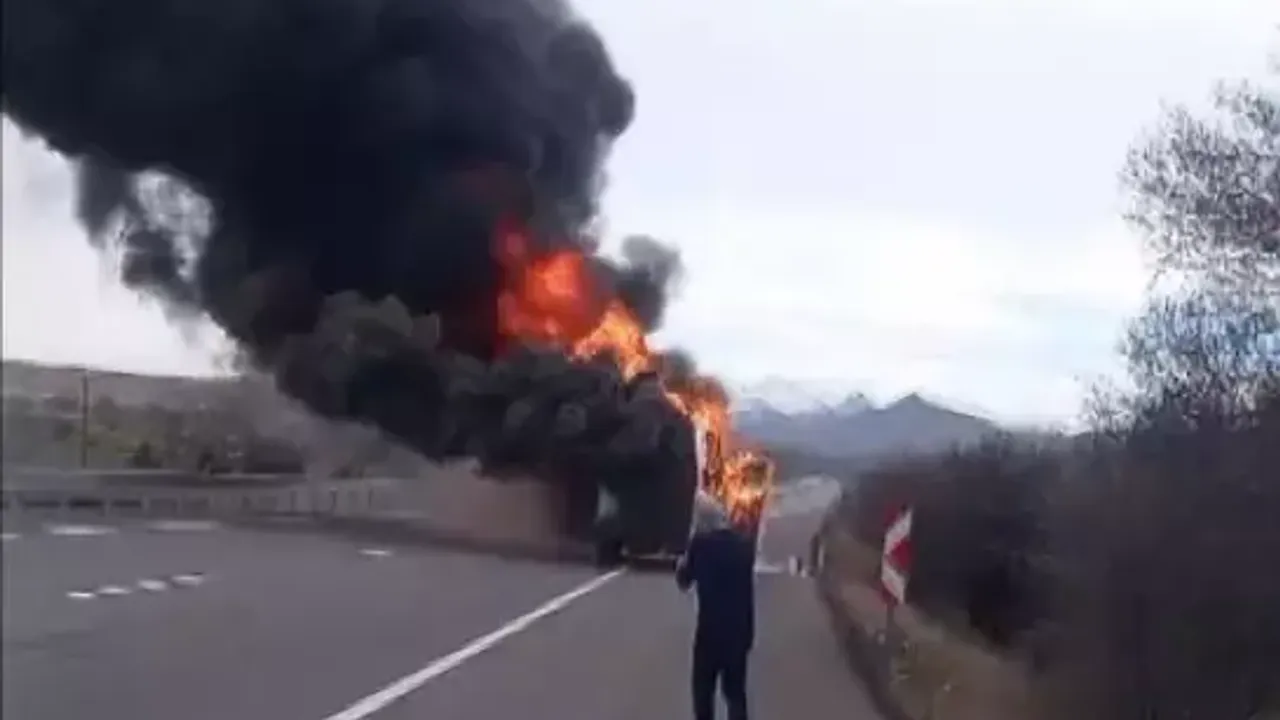 İhbar üzerine bölgeye çok sayıda jandarma ve itfaiye ekibi sevk edildi. Jandarma ekipleri, patlama riskine karşı karayolunu çift yönlü trafiğe kapatarak güvenlik koridoru oluşturdu. Ekmeğini kazandığı aracının gözlerinin önünde kül oluşunu izleyen sürücü C.A’ın yaşadığı çaresizlik ise yürekleri dağladı. Telefonda 112 Acil Çağrı Merkezi operatörüyle görüşen Aytaç, itfaiyenin henüz ulaşmadığını belirterek, "Arabam yanıyor, gelmedi ablam gelmedi!" diyerek gözyaşları içinde feryat etti. Ardından bir yakınıyla konuşan acılı sürücü, "Söndüremedim abi, arabam yandı bitti" sözleriyle yaşadığı yıkımı dile getirdi.