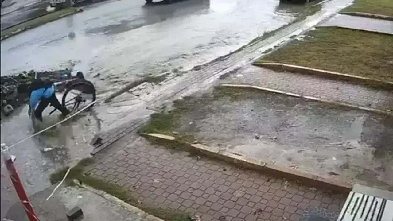 Çevredeki esnaf, öğrencinin yardımına koşarak onu çukurdan çıkardı. Yaralanmadığı anlaşılan çocuk, bisikletine binerek bölgeden uzaklaştı. O anlar, bir iş yerinin güvenlik kamerası tarafından kaydedildi.