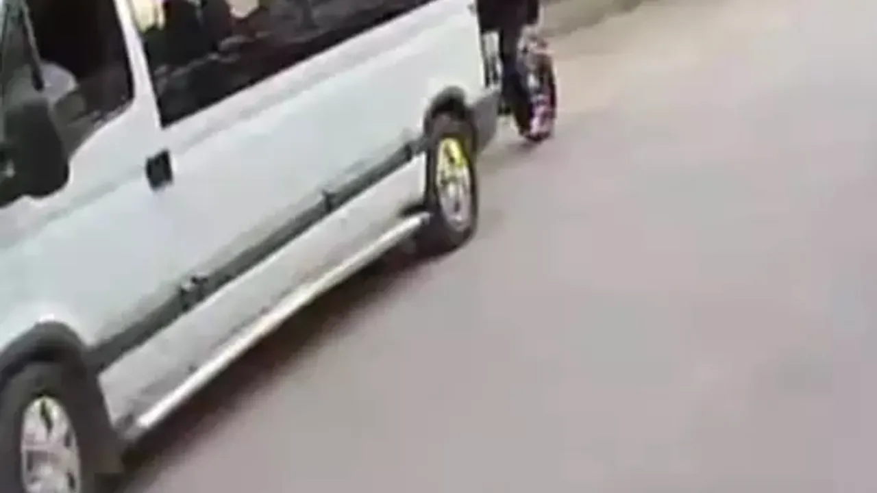 Minibüs sürücüsü durmadan olay yerinden uzaklaşırken, bisikletli çocuk sürücüden şikâyetçi oldu. Güvenlik kamerası görüntülerinde, çocuğun refleksi sayesinde olası bir facianın önüne geçildiği görülüyor.