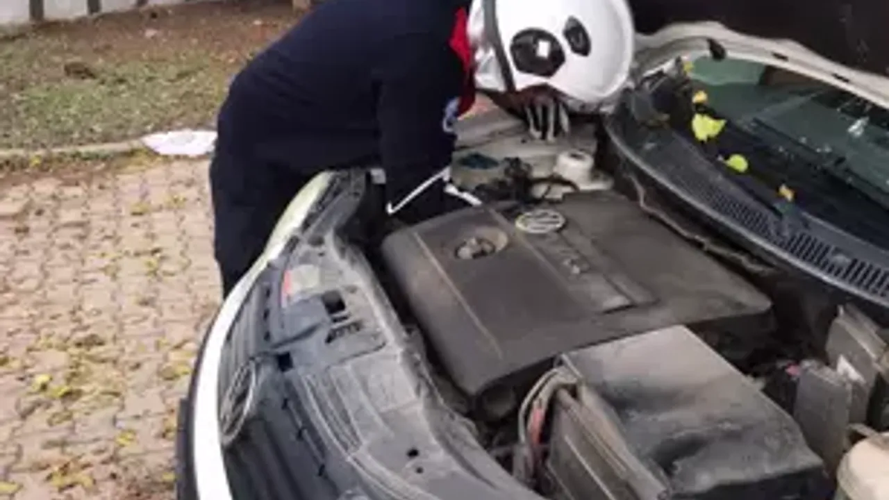 Oğulpınar Mahallesi’nde park halindeki otomobilin motorundan kedi sesi duyan çocuklar, minik kediyi çıkarmaya çalıştı. Otomobilin sahibi de müdahale etti ancak başarılı olamayınca itfaiyeden yardım istendi.