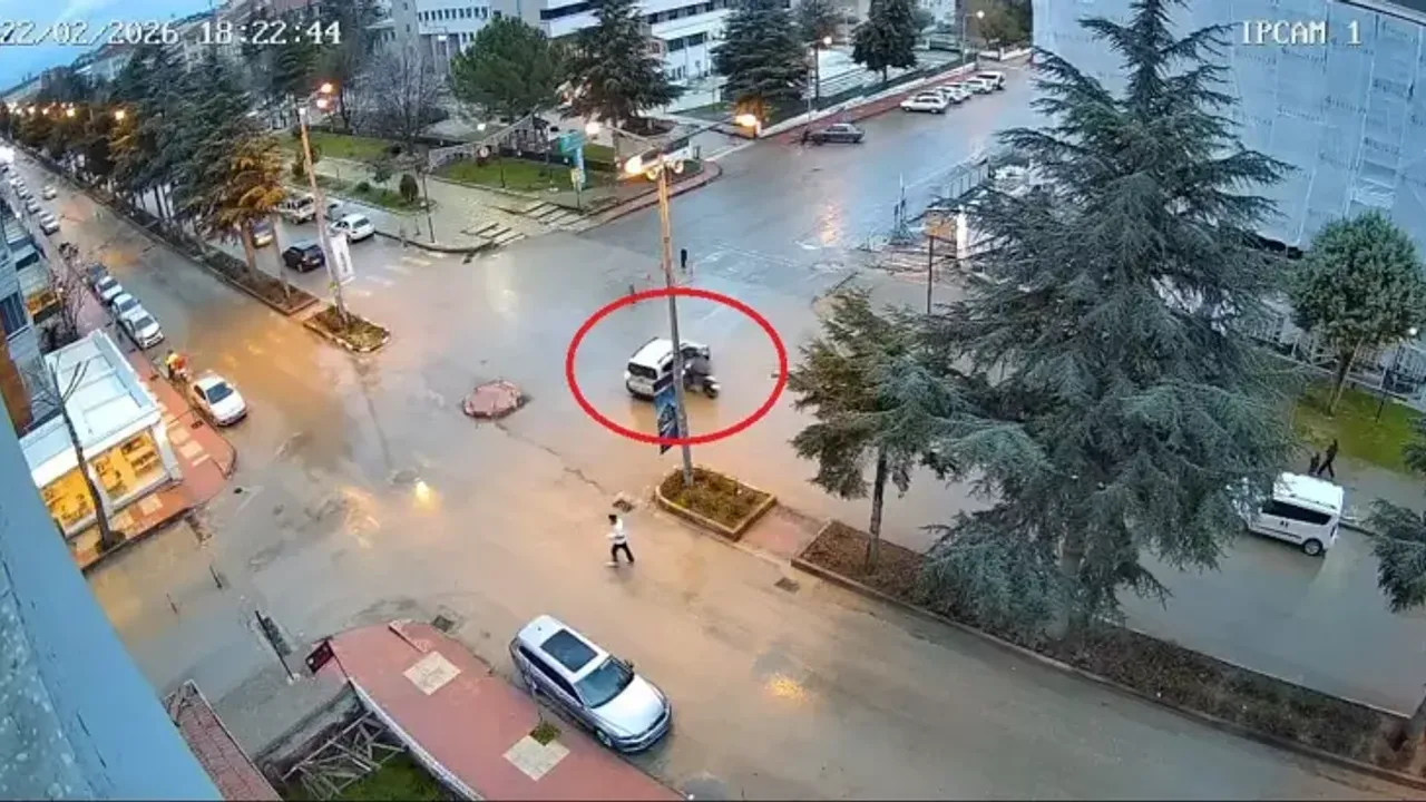 Öte yandan kaza anı, çevrede bulunan bir iş yerinin güvenlik kamerasına saniye saniye yansıdı. Görüntülerde motosikletin kavşağa yaklaştığı sırada hafif ticari aracın dönüş yaptığı ve çarpışmanın ardından iki kişinin yere savrulduğu anlar yer aldı.