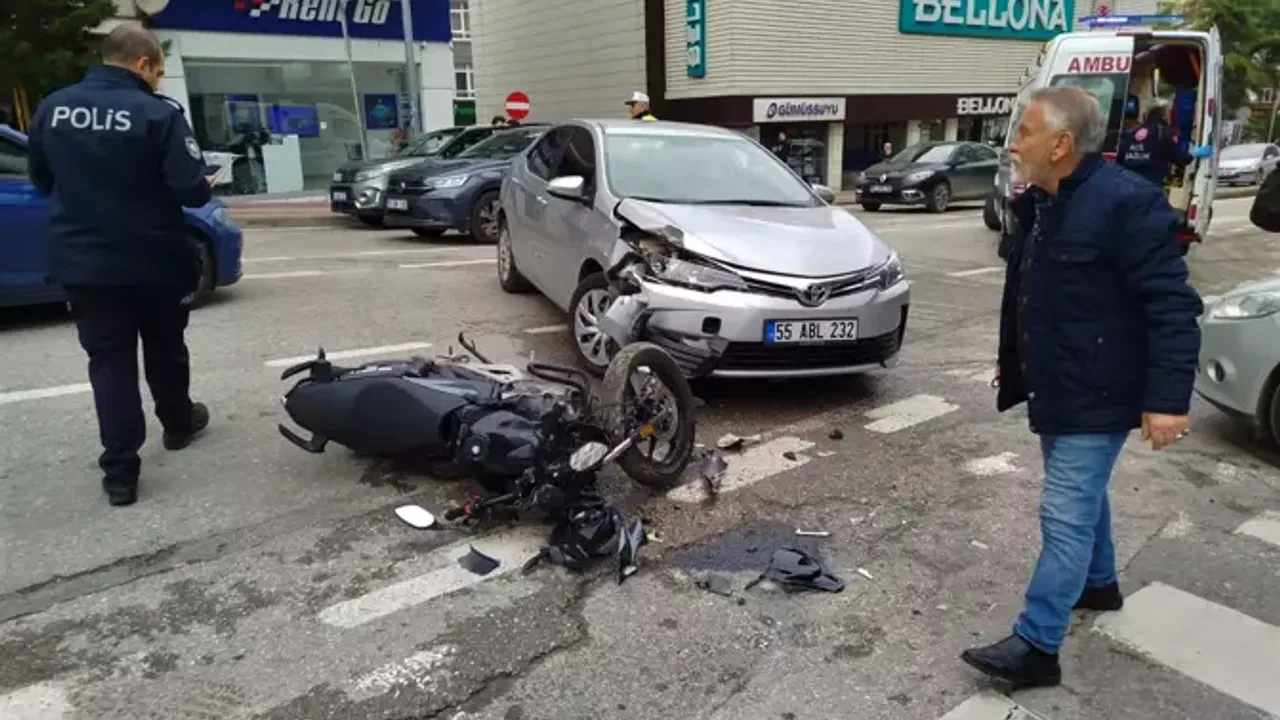 Kaza, sabah saat 09.30 sıralarında İstasyon Mahallesi Lise Caddesi ile Saadet Caddesi kavşağında meydana geldi. Edinilen bilgiye göre, E.D idaresindeki 55 ABL 232 plakalı otomobil, Lise Caddesi’nden Saadet Caddesi’ne dönüş yaparken, karşı yönden gelen B.T yönetimindeki 55 AID 083 plakalı motosikletle çarpıştı.