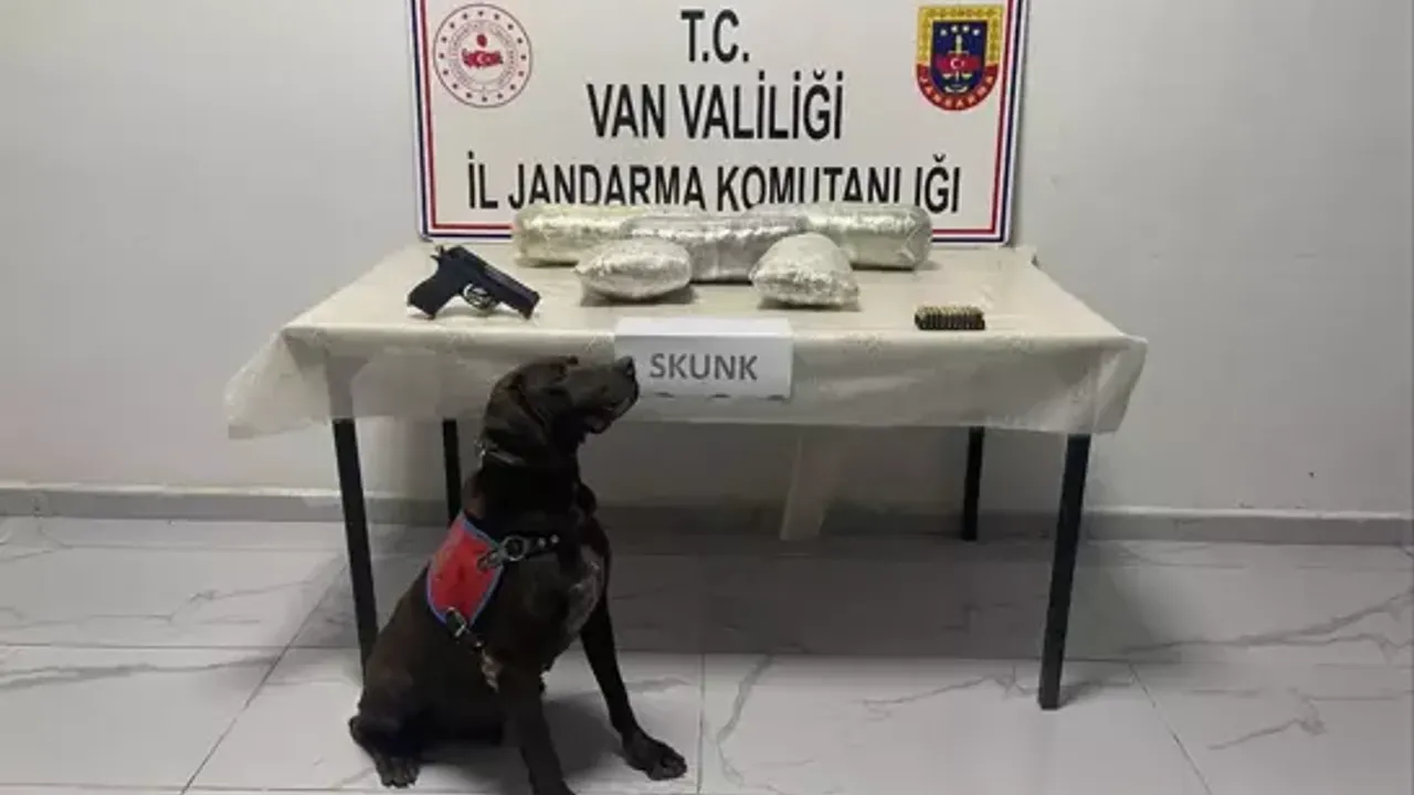 İl Jandarma Komutanlığı Narkotik Suçlarla Mücadele Şubesi ile Başkale İlçe Jandarma Komutanlığı ekipleri, ilçeye bağlı Çamlık Mahallesi mevkiinde yol kontrolü yaptı. Kontroller sırasında durdurulan bir araçta narkotik köpeği 'Tütün' ile yapılan detaylı aramada, aracın gizli bölmesine yerleştirilmiş 4 kilo 311 gram skunk, 1 tabanca, 63 tabanca fişeği ve 2 cep telefonu ele geçirildi.