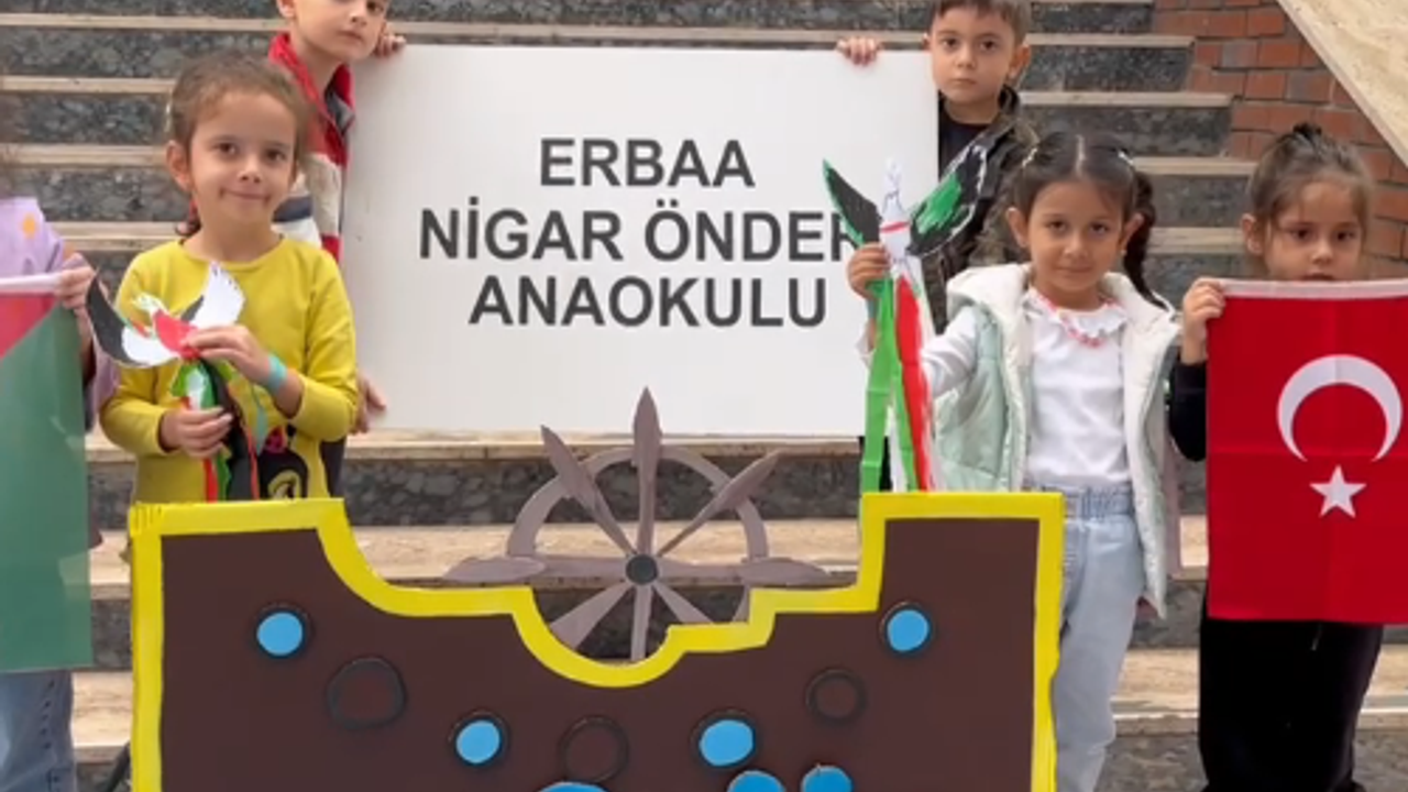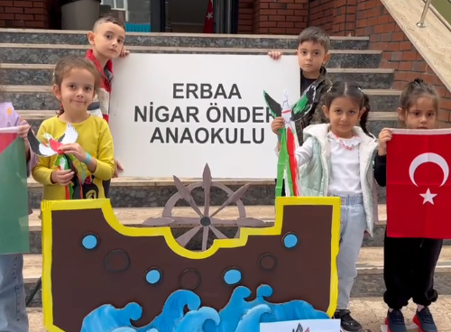 Sumud Gemisi’ne gönderilmek üzere yapılan sembolik destekler, minik öğrencilerin dünya meselelerine karşı duyarlılığını ve empati yeteneklerini gözler önüne serdi. Okul yönetimi ve veliler de etkinliğe destek vererek bu anlamlı çalışmanın yaygınlaşması gerektiğini ifade etti.