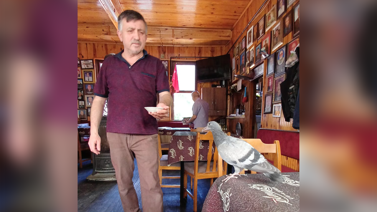 Güvercin, bir süre kahvehane içinde masaların üzerinde zıplayarak dolaştıktan sonra kanatlarını çırparak dışarı uçtu. O anları cep telefonlarıyla kaydeden müşteriler, yaşanan bu sıcak karşılamayı ölümsüzleştirdi.