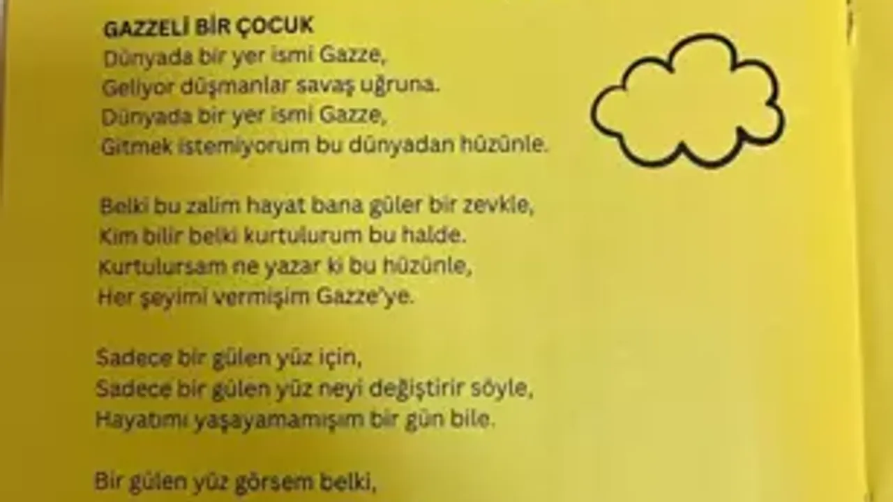 Duygu yüklü etkinlikte öğrenciler, kaleme aldıkları şiirlerle Filistin’e destek mesajları verdi.