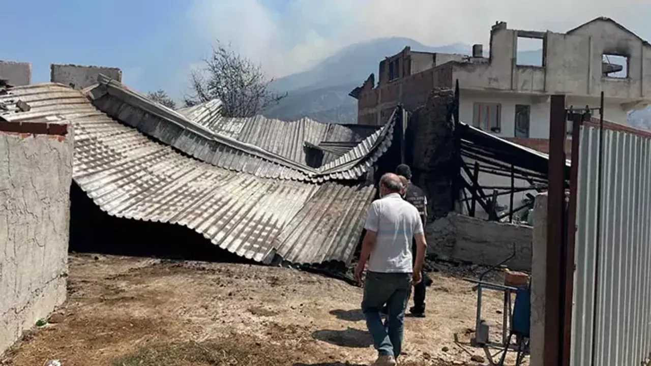 Yaklaşık 1500 hektarlık alanda etkili olan yangın nedeniyle 2 mahalle tahliye edilirken, 3 ev tamamen yandı.