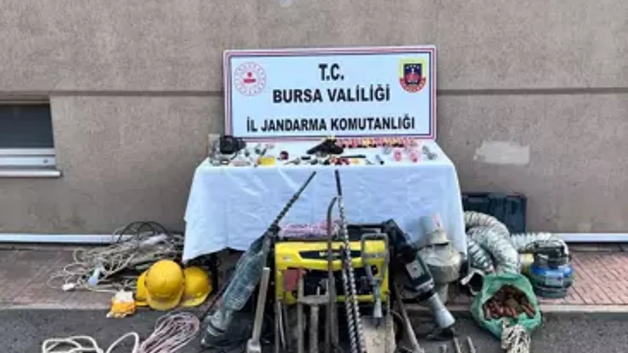 Bursa İl Jandarma Komutanlığı ekipleri, bölgedeki kaçak kazı ihbarı üzerine harekete geçti. Operasyonda, kazı yapan 9 şüpheli olay yerinde yakalanırken, yapılan aramalarda tehlikeli malzemeler ele geçirildi.
