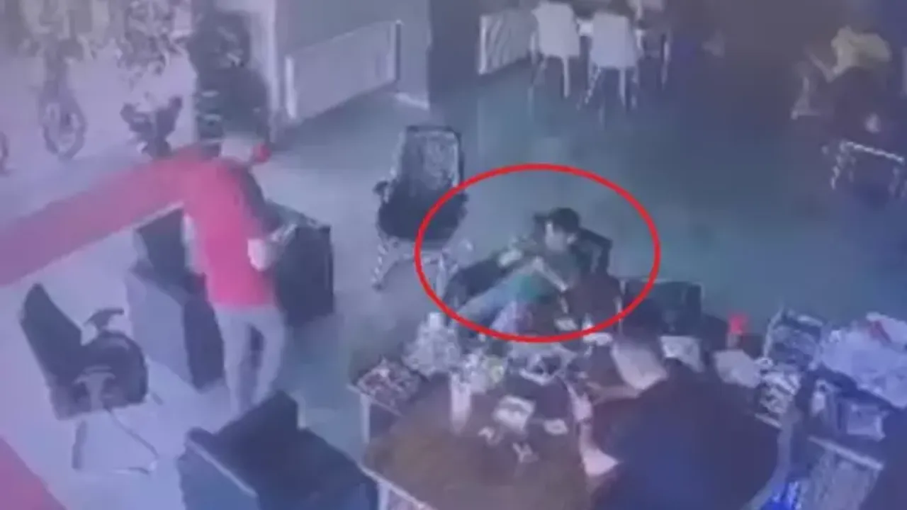 Saldırı anı güvenlik kamerasına saniye saniye yansıdı. Görüntülerde, iş yeri çalışanlarından birinin vurulan E.’yi koltukla birlikte geriye çekerek diğer mermilerden korumaya çalıştığı görüldü. Saldırı sonrası iş yeri sahibi olan baba, oğlunun yarasına tampon yaparken görüntülendi.