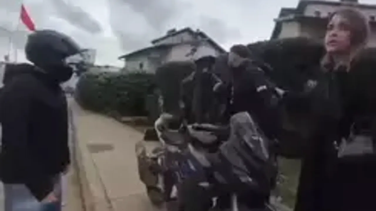 Yaşanan gerginlik, motosiklet sürücüsünün kask kamerasına saniye saniye yansıdı.