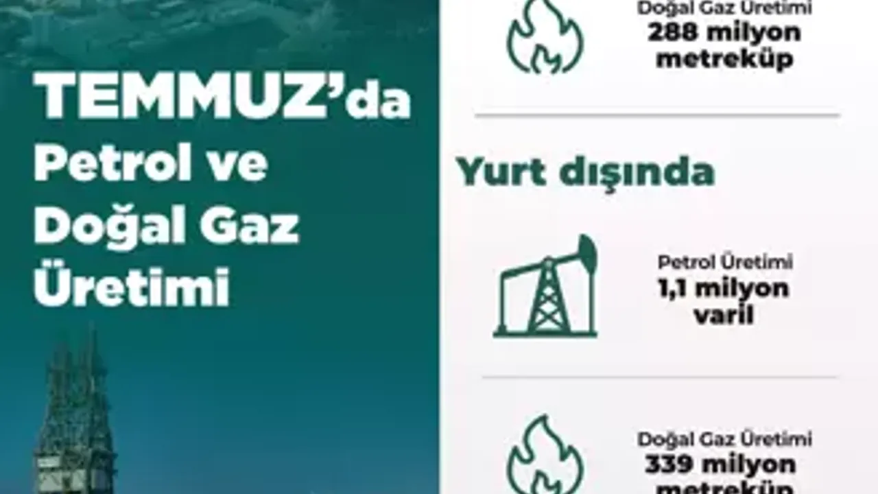 Aynı dönemde aylık doğal gaz üretimi ise toplam 288 milyon metreküp olarak gerçekleşirken, petrol eşdeğeri olarak bakıldığında aylık toplam petrol ve doğal gaz üretimi 5,7 milyon varil oldu.