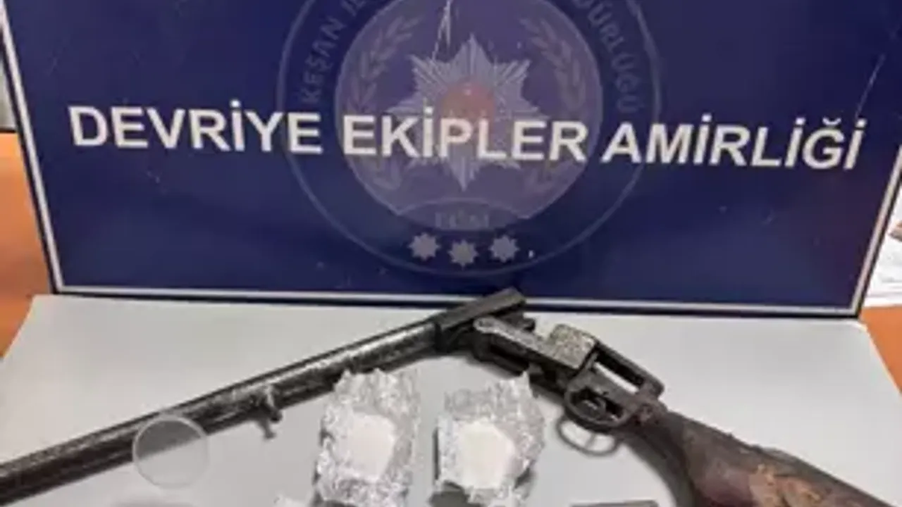 Keşan İlçe Emniyet Müdürlüğü ekipleri, Aşağı Zaferiye Mahallesi’nde durumundan şüphelenilen bir aracı durdurdu ve arama gerçekleştirdi. Yapılan kontrollerde araçta 19 gram uyuşturucu madde ile 1 adet ruhsatsız av tüfeği bulundu. Ele geçirilen malzemelere el konulurken, araçta bulunan Ö.E. ve M.B. gözaltına alındı.