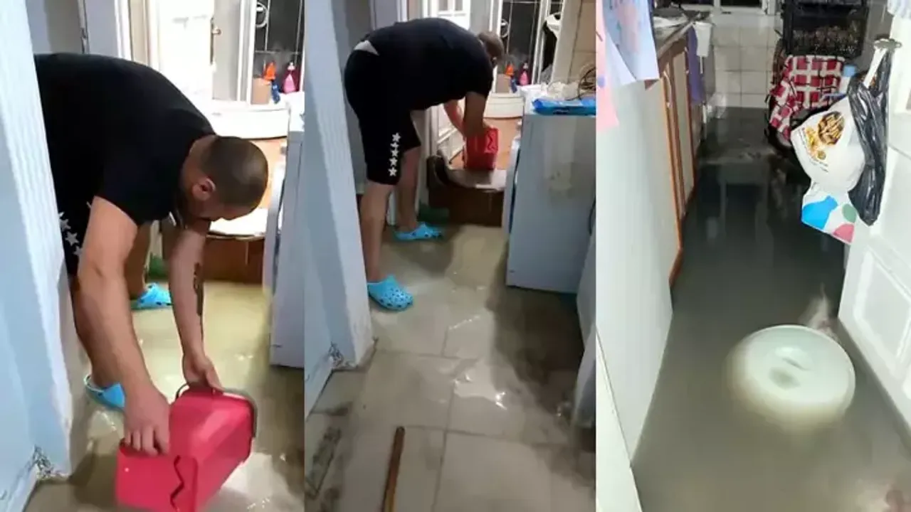 Cihangir Mahallesi Güneri Sokak’ta, yola yapılan kasisin önünde su birikintisi oluştu. Biriken yağmur suları, hemen yakındaki bir apartman dairesine doldu. Evde yaşayanlar, suyun içeri girdiğini fark edince panikle uykularından kalkarak kendi imkanlarıyla tahliye çalışması yaptı.