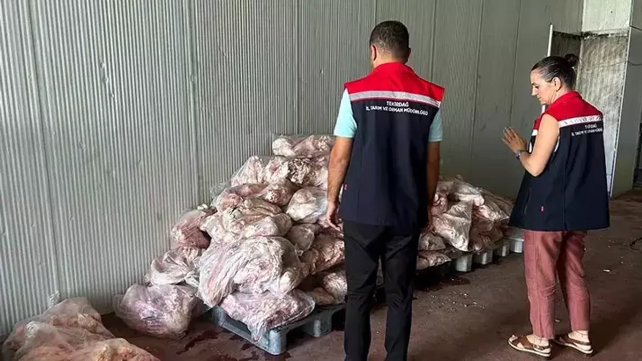 Soğuk hava deposunda etiketsiz ve ambalajı yırtılmış ürünlerin bulunduğu, koridorda ise gıdaya uygun olmayan sıcaklıkta ve hijyen dışı koşullarda iç yağların bekletildiği belirlendi. Ayrıca, tahta paletler üzerinde uygun olmayan şekilde muhafaza edilen ürünler, çapraz bulaşma riski taşıyan alanlarda işleme faaliyetleri, kullanılmış et işleme ekipmanları ve boş piliç kutularına da rastlandı.