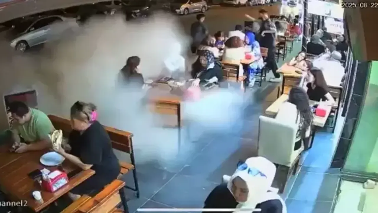 Patlama sesiyle irkilen restoran müşterileri, panikle yerlerinden kalkarak hızla uzaklaştı. Yola yayılan toz bulutu ve ani gürültü, çevrede kısa süreli tedirginliğe yol açtı. O anlar, işletmenin güvenlik kamerası tarafından saniye saniye kaydedildi.