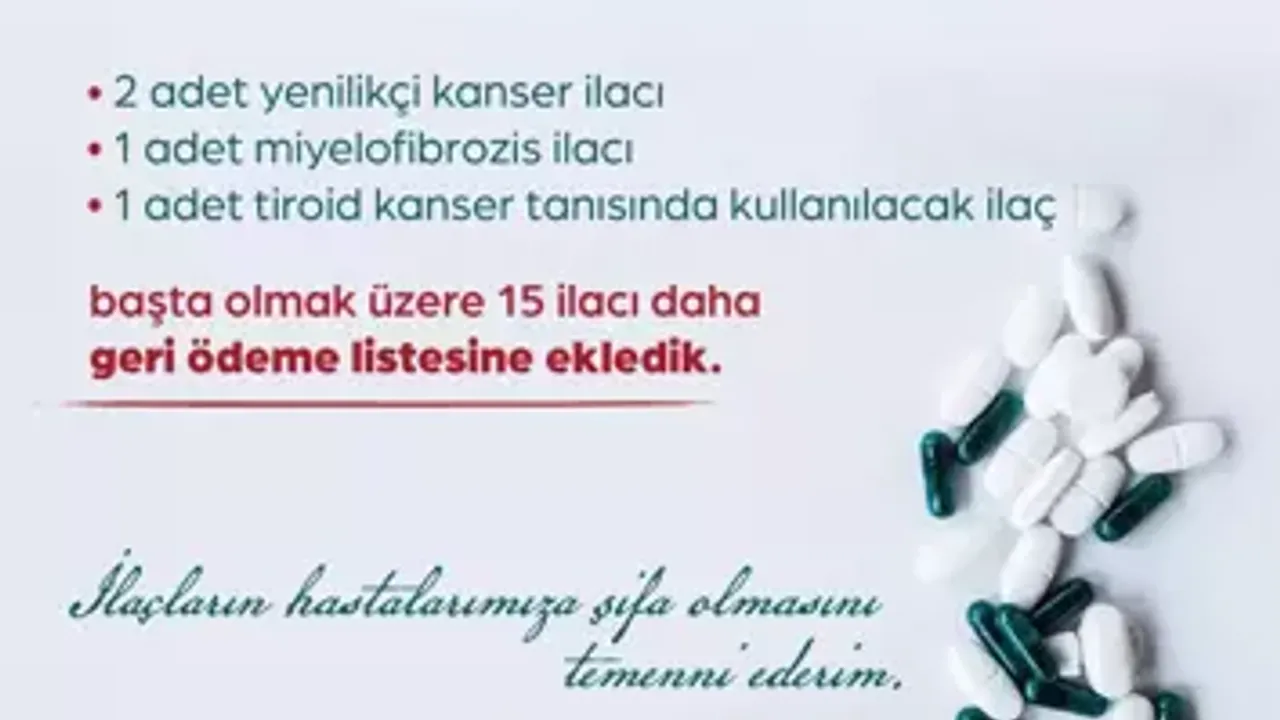 Sosyal medya hesabından açıklama yapan Bakan Işıkhan, yapılan düzenlemeyle multiple miyelom, hidradentitis suprivata, dev hücreli arterit ve kronik demir yüklemesi gibi hastalıkların tedavisinde kullanılan ilaçların rapor ve reçeteleme kurallarının güncellendiğini belirtti. Ayrıca bu güncellemeyle hastalara yeni tedavi seçenekleri sunulduğunu ifade etti.
