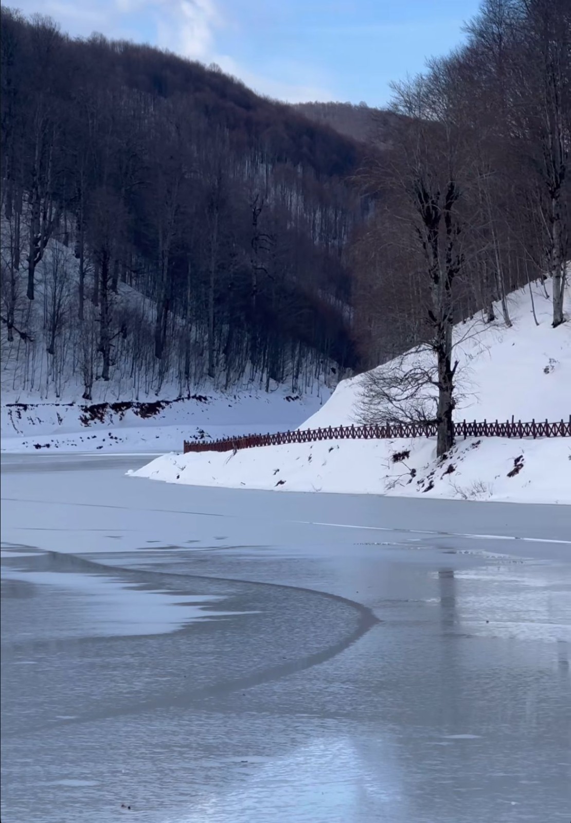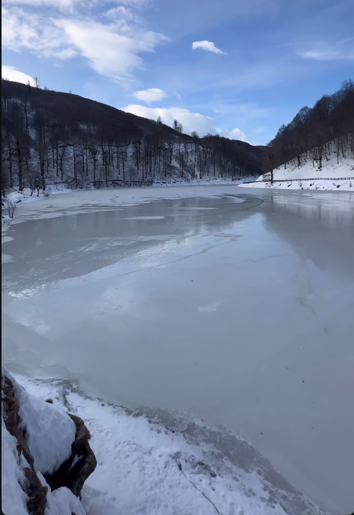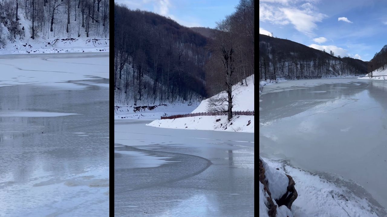 Gece saatlerinde etkisini artıran soğuk hava nedeniyle göl yüzeyinde yaklaşık 15 santimetre kalınlığında buz oluştu. Kar örtüsüyle birleşen donmuş göl, çevresiyle birlikte kartpostallık görüntüler oluşturdu.