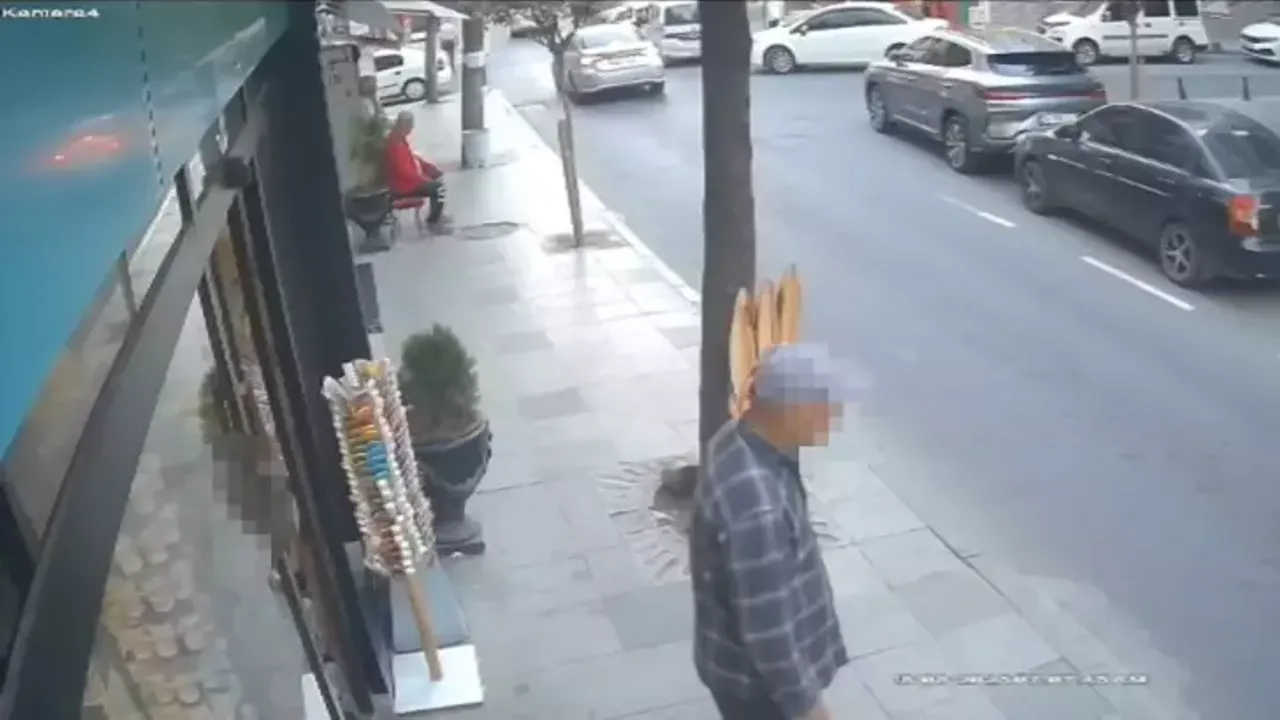 Kadının yardım istemesi üzerine pastane çalışanı, şüpheliyi yumruk atarak uzaklaştırdı. O anlar güvenlik kamerasına yansıdı.