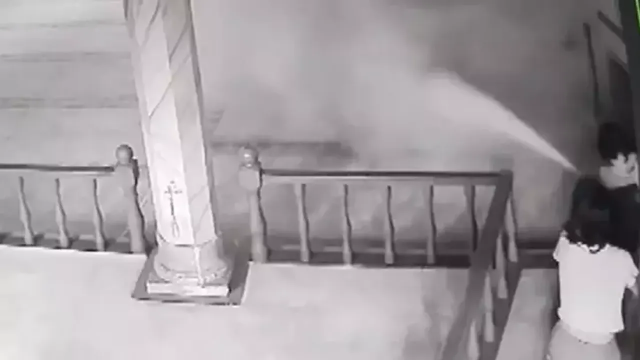 Olay, Servi Mahallesi Cumhuriyet Caddesi üzerinde bulunan Alipaşa Camii’nde sabah 07.30 sıralarında gerçekleşti. İçeri giren gençler, bir süre camide dolaştıktan sonra girişte bulunan yangın tüpünü alarak birbirlerine sıktı. Gençlerin camide uygunsuz şekilde davranış sergiledikleri görüntüler, güvenlik kamerasına yansıdı.