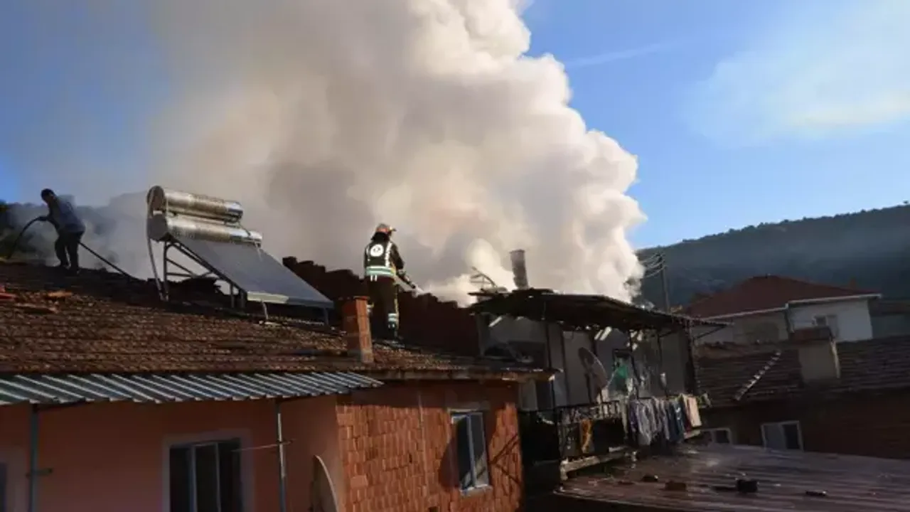 O.K’a ait tek katlı evin çatısından yükselen alevleri gören mahalle sakinleri durumu itfaiye ekiplerine bildirdi.