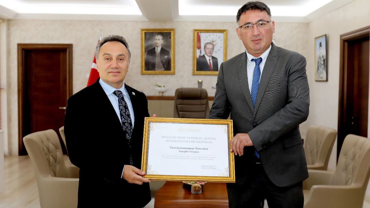 Tokat İl Sağlık Müdürlüğü denetim ekibi tarafından yapılan incelemeler sonrasında kriterleri başarıyla karşılayan Tokat Gaziosmanpaşa Üniversitesine verilen sertifika, Tokat İl Sağlık Müdürü Uzm. Dr. Atilla Bıyık tarafından Rektör Prof. Dr. Fatih Yılmaz’a takdim edildi. Rektörlük makamında gerçekleşen törende, TOGÜ’nün bu konudaki öncü yaklaşımına vurgu yapıldı. Rektör Yılmaz, yapılan bu çalışmaların sadece belge almakla sınırlı olmadığını, aynı zamanda üniversite çalışanlarının yaşam kalitesini yükseltmeyi hedefleyen sürdürülebilir bir yaklaşımın ürünü olduğunu belirtti. Sağlıklı yaşam kültürünü yaygınlaştırmak adına çalışanlara yönelik düzenli bilgilendirme toplantıları, sağlıklı menü seçenekleri, spor etkinlikleri ve yürüyüş parkurları gibi birçok uygulamayı hayata geçirdiklerini ifade etti.