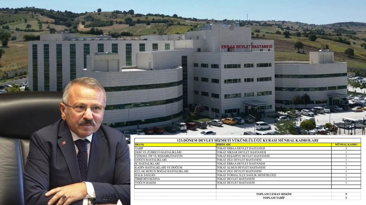 “Sağlık Bakanlığı 123. Dönem Devlet Hizmeti Yükümlülüğü kurası kapsamında Tokat’ımız ve ilçelerimiz için 9 Uzman, 2 Tabip olmak üzere toplam 11 hekim kadrosu açılmıştır. Erbaa Devlet Hastanesi bu kadrolardan 3’ünü alarak önemli bir sağlık desteği kazanmıştır. Atanacak doktorlarımıza ve şehrimize hayırlı olmasını diliyorum.”