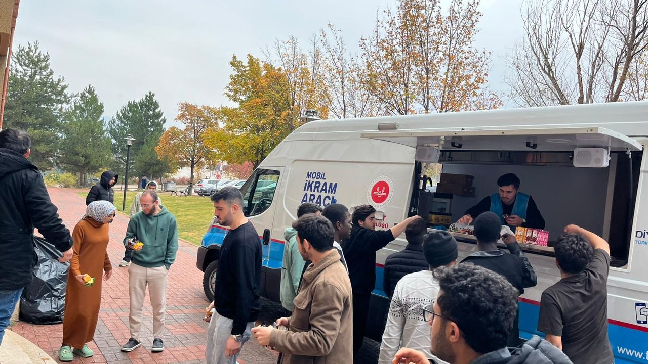 Gaziosmanpaşa Üniversitesi kampüsünde kurulan mobil ikram aracında, öğrencilere sıcak içecekler ve çeşitli ikramlar sunuldu. Etkinlik, yaklaşan sınav haftası öncesinde öğrencilerin moralini yükseltmeyi ve motivasyonlarını artırmayı amaçladı.