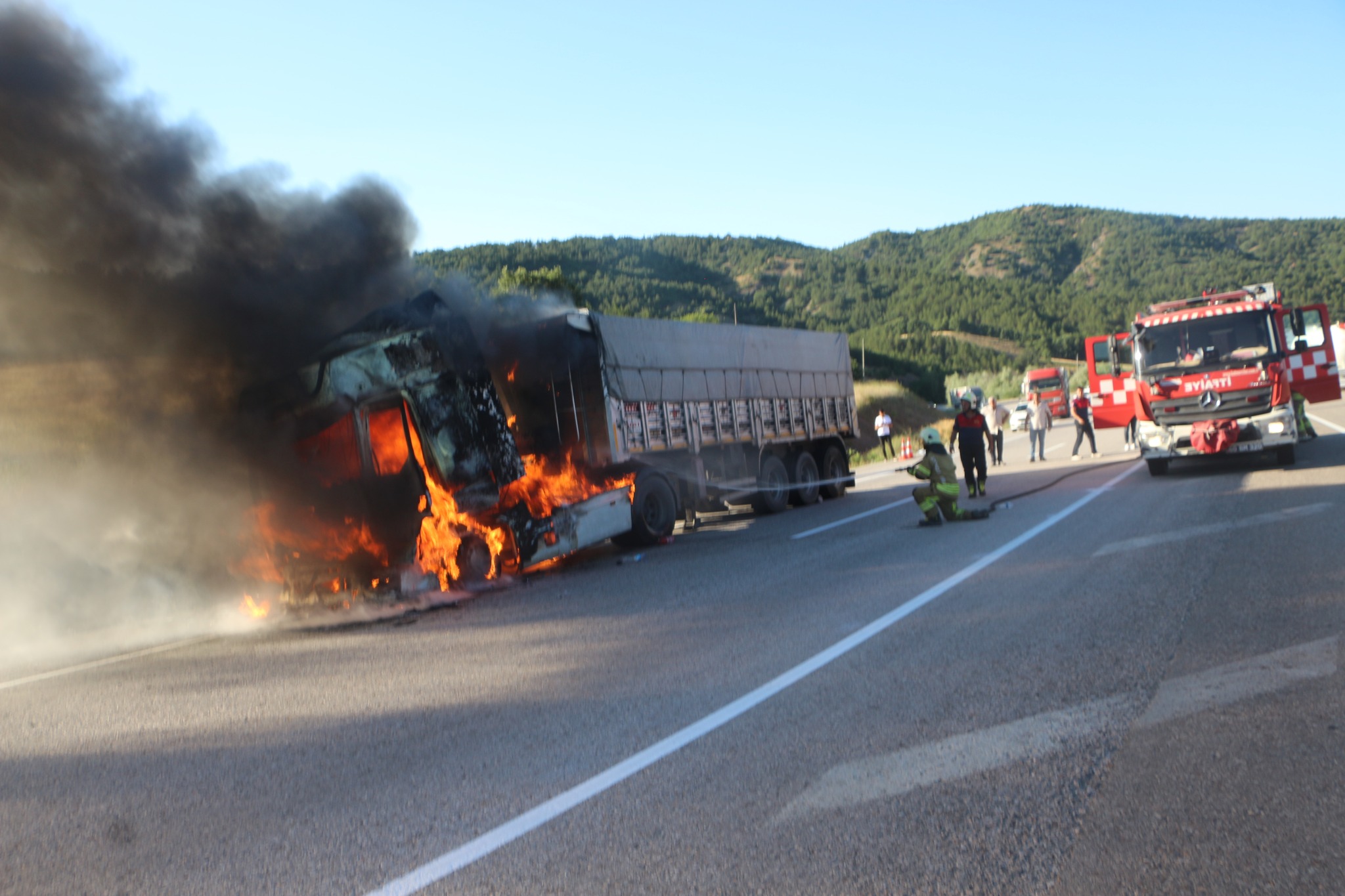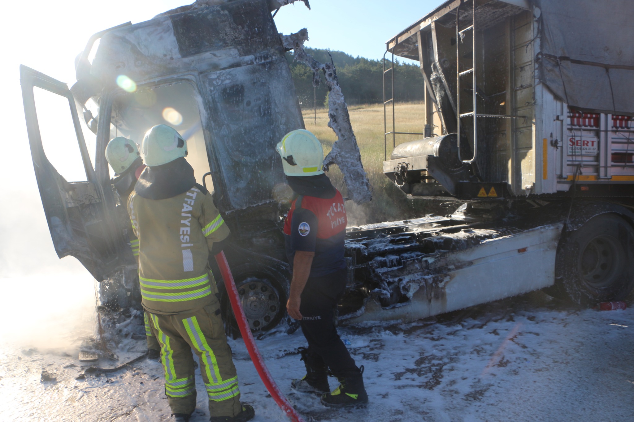Olay, dün saat 17.30 sıralarında Bayram Altun yönetimindeki 02 AFJ 090 plakalı TIR’ın çekici kısmında yangın çıkmasıyla başladı. Alevleri fark eden sürücü, TIR’ı hemen emniyet şeridine çekerek 112 Acil Çağrı Merkezi'ne haber verdi.