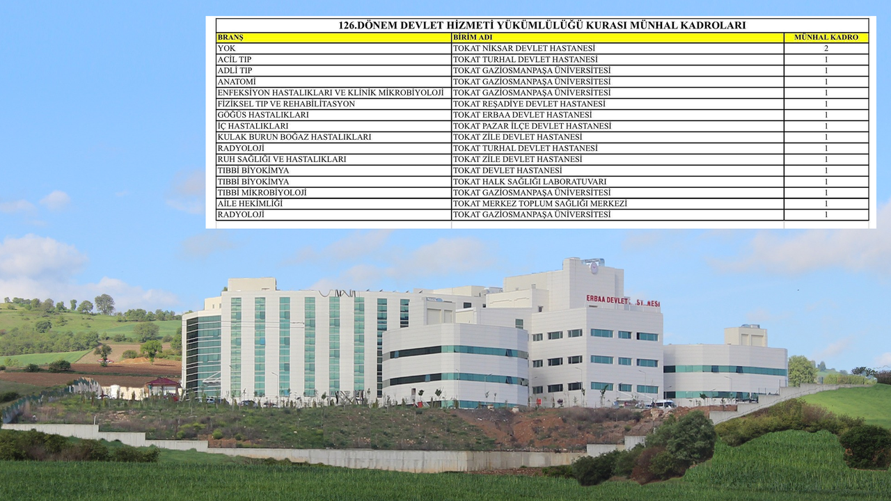 Resmi verilere göre, Tokat’a 15 uzman hekim ve 2 pratisyen hekim olmak üzere toplam 17 yeni kadro ayrıldı. Bu kadroların büyük kısmı Tokat merkezdeki hastaneler ve sağlık birimlerine yerleştirilecek. Erbaa Devlet Hastanesi'ne ise 1 göğüs hastalıkları uzmanı katıldı.