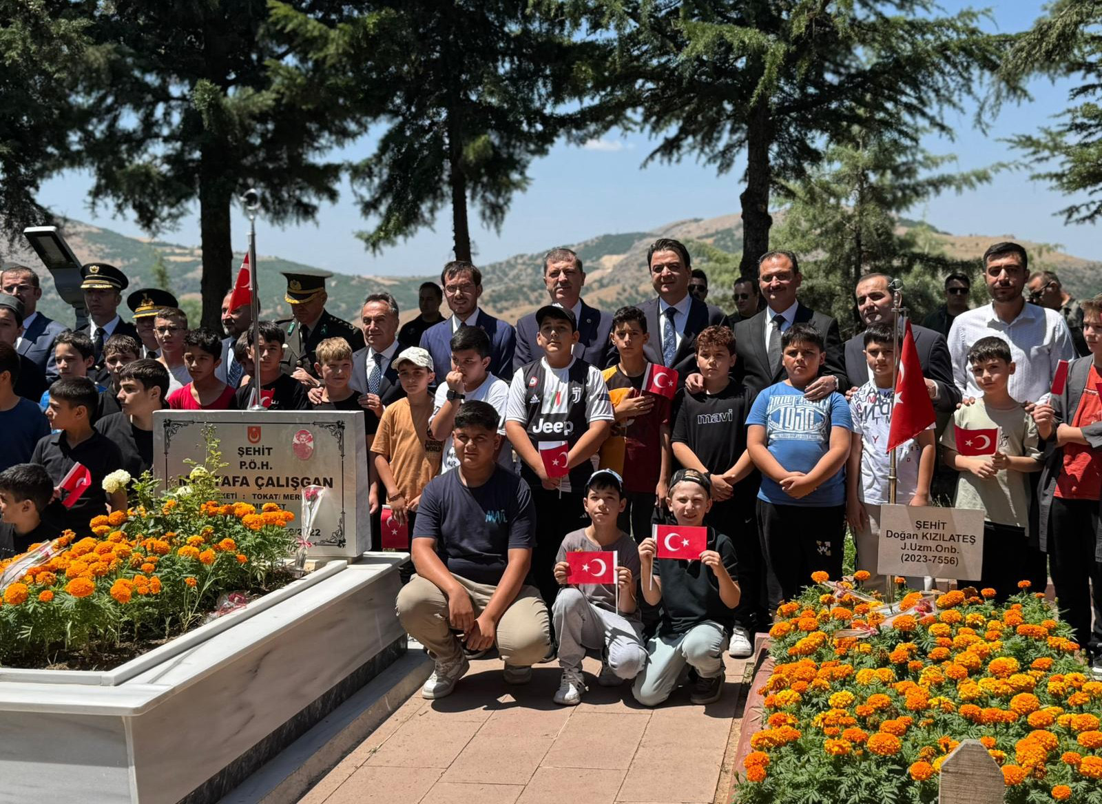 Tokat’taki programa, Tokat Valisi Abdullah Köklü, AK Parti Tokat Milletvekilleri Mustafa Arslan ve Cüneyt Aldemir, Tokat Belediye Başkanı Mehmet Kemal Yazıcıoğlu, il protokolü, siyasi parti temsilcileri ve çok sayıda vatandaş katıldı. Katılımcılar, Şehitler Mezarlığı’nda tek tek mezarları ziyaret ederek, şehitlerimizin aziz hatıraları için karanfil bıraktı.