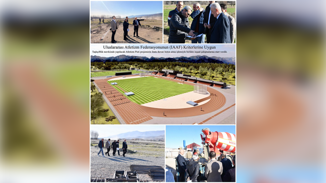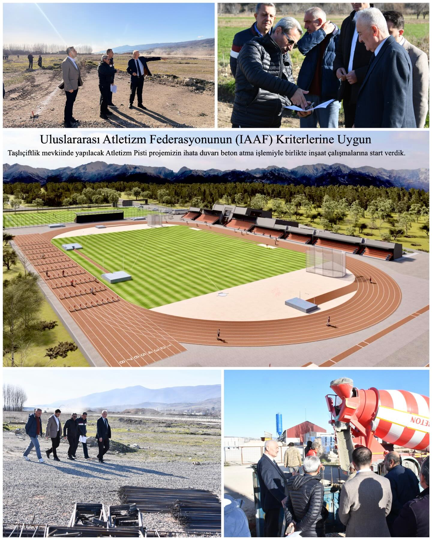Uluslararası Atletizm Federasyonu (IAAF) kriterlerine uygun olarak Taşlıçiftlik mevkiinde inşa edilecek olan modern Atletizm Pisti projesinde, ihata duvarı beton atma işlemiyle birlikte ilk aşama geçildi.