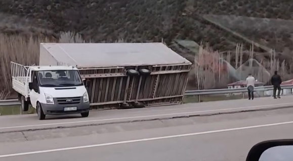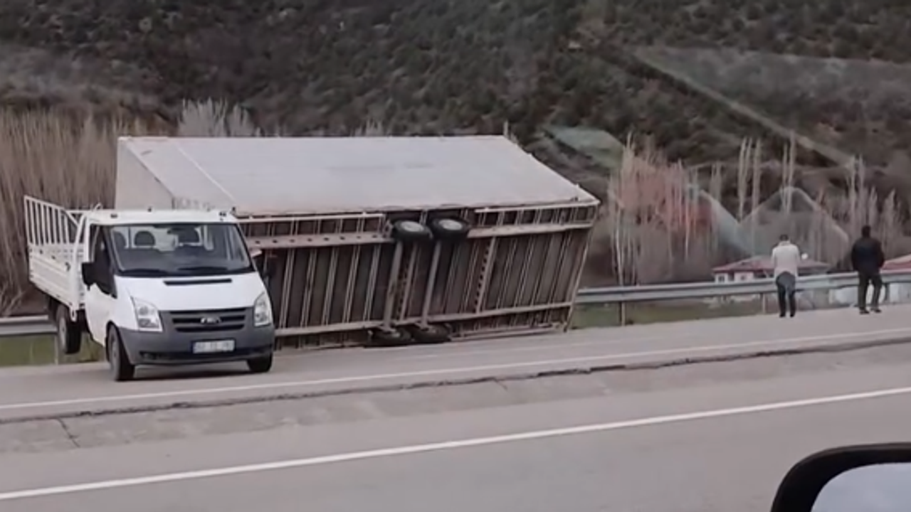 Tokat-Sivas kara yolu üzerinde bulunan Çamlıbel beldesi geçidinde, fırtına nedeniyle sürücüler zor anlar yaşadı. Rüzgârın şiddetini artırdığı dakikalarda, yük taşıyan bir araç dengesini kaybederek yan yattı. Devrilen aracın görüntülerinde, rüzgârın aracı nasıl savurduğu net bir şekilde görülürken, kazanın ardından bölgeye ekipler sevk edildi.