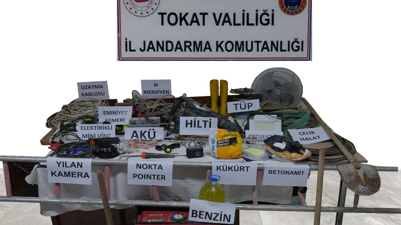 Baskın sırasında kaçak kazıda kullanılan çeşitli malzemeler ele geçirildi. Jandarma ekipleri tarafından bulunan ekipmanlar şöyle: