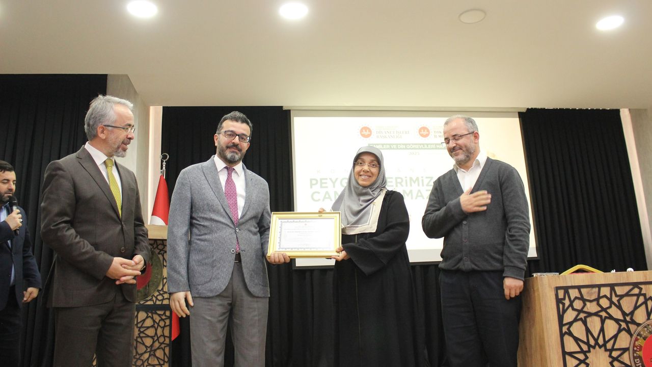 Programın sonunda ise anlamlı bir takdim gerçekleştirildi. Kur’an-ı Kerim’i Güzel Okuma Kadınlar Türkiye Finalinde 3’üncü olan Hacı Mustafa Narman Kur’an Kursu Öğreticisi Kudret Köroğlu’na, başarı belgesi Mustafa Irmaklı tarafından takdim edildi.