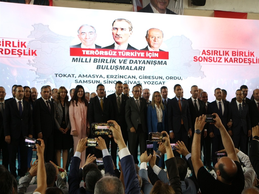 MHP, 'Terörsüz Türkiye' süreci kapsamında 81 ilde 'Terörsüz Türkiye İçin Milli Birlik ve Dayanışma Buluşmaları' gerçekleştirmeye başladı. 'Asırlık Birlik, Sonsuz Kardeşlik' teması ile düzenlenen buluşmaların 3’üncü toplantısı Tokat’ta yapıldı. Hüseyin Akbaş Kapalı Spor Salonu’nda yapılan toplantıya MHP Genel Başkan Yardımcısı ve Samsun Milletvekili Prof. Dr. İlyas Topsakal, Tokat Milletvekili Yücel Bulut, Nevşehir Milletvekili ve TBMM Grup Başkanvekili Filiz Kılıç, Amasya, Erzincan, Giresun, Ordu, Samsun, Sinop, Sivas ve Yozgat’tan gelen parti temsilcileri, sivil toplum kuruluşları katıldı.