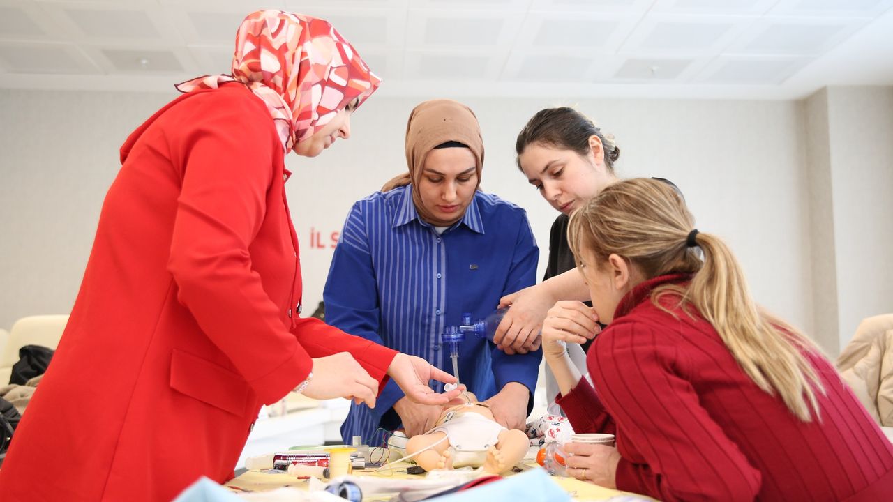 Katılımcılara, teorik bilgilendirme ve uygulamalı eğitim eşliğinde yenidoğana müdahale, solunum desteği ve resüsitasyon teknikleri detaylı bir şekilde aktarıldı.