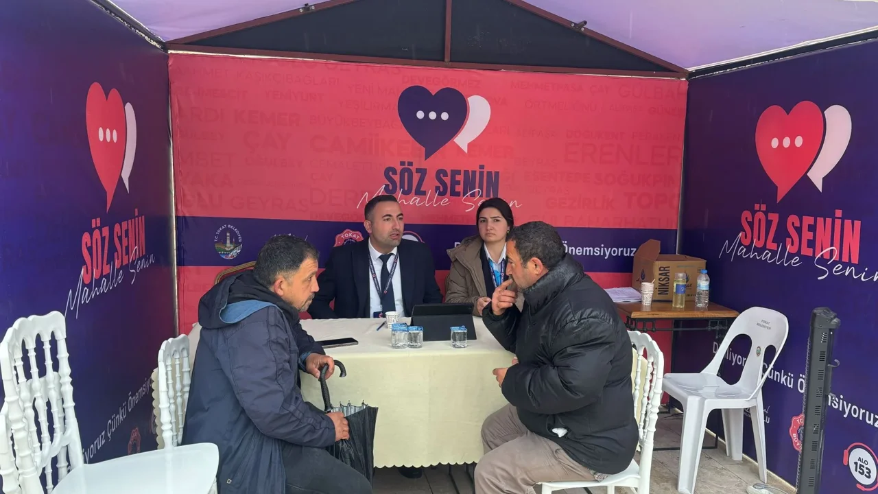 Kurulan "Büyük Aile" standında mahalle sakinlerinin talepleri yerinde dinlenerek anlık çözümler üretiliyor. Tokat Belediyesi, vatandaşlarla olan iletişimi güçlendirmek ve sorunları yerinde tespit etmek amacıyla devrim niteliğinde bir projeyi başlattı. "Büyük Aile Beyaz Masa" birimi tarafından koordine edilen “Söz Senin, Mahalle Senin” projesi kapsamında, belediye yönetimi masa başından kalkarak doğrudan sokağa, vatandaşın yanına taşındı.