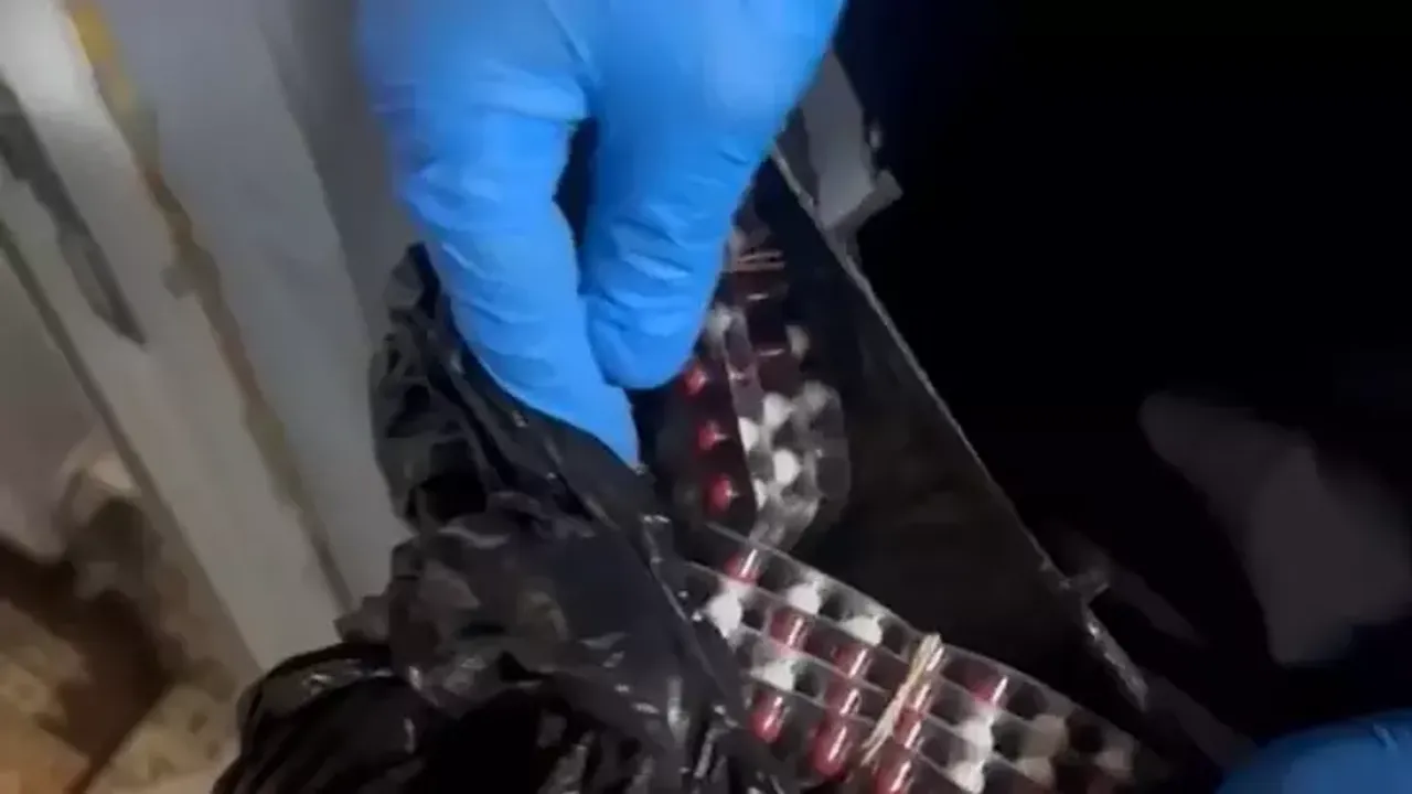 Şüphelilerden B.A.’nın (32) evinin banyosundaki tavan arasında gizlenmiş reçeteye tabi 363 uyuşturucu içerikli hap ele geçirildi. B.A. ifadesinde, “Hapları baş ağrımdan dolayı içiyorum” dedi.