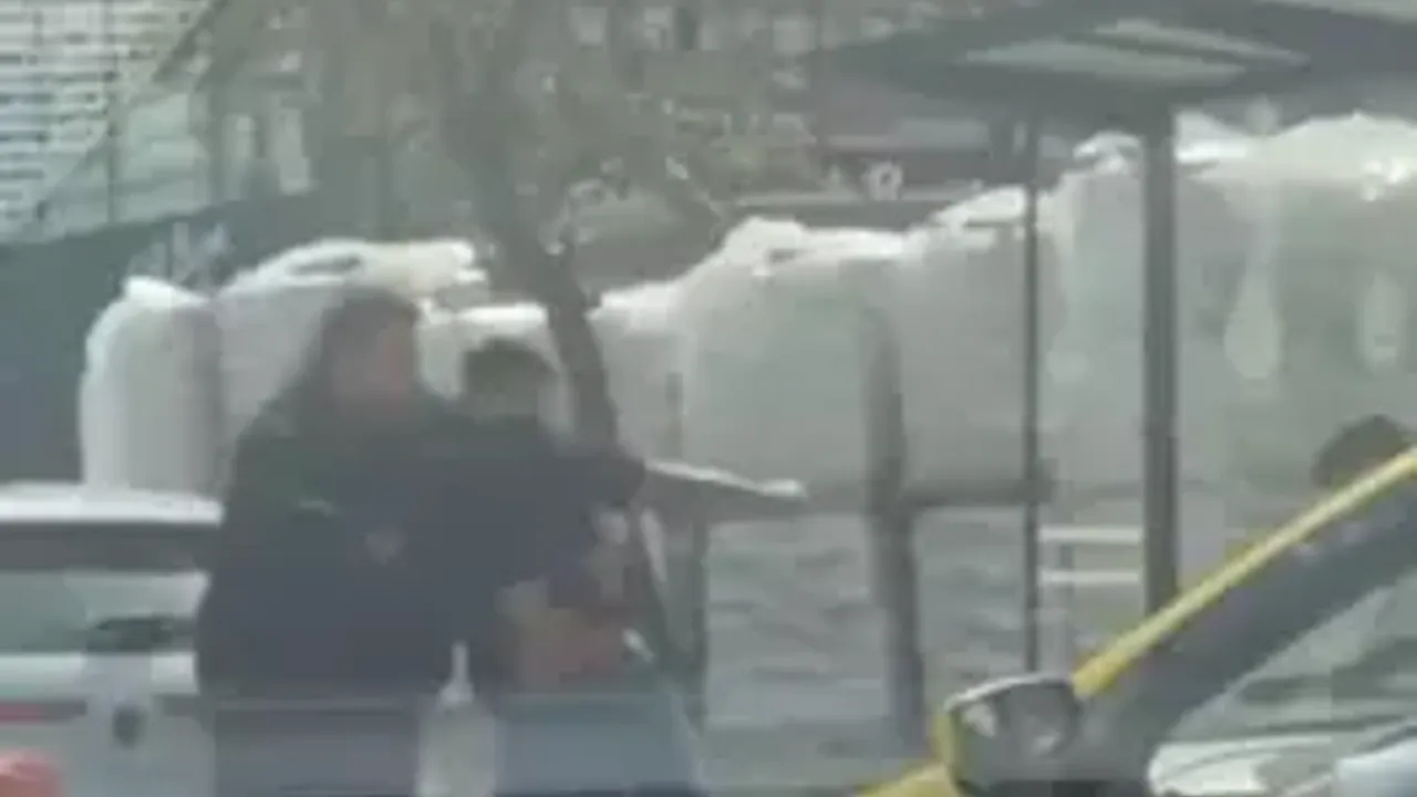 Olay anı, bölgede bulunan bir başka sürücünün cep telefonu kamerasına yansıdı. Görüntülerde, iki sürücünün birbirine saldırdığı, çevredekilerin araya girmeye çalıştığı ve kavganın kısa sürede kalabalığın dikkatini çektiği görülüyor.