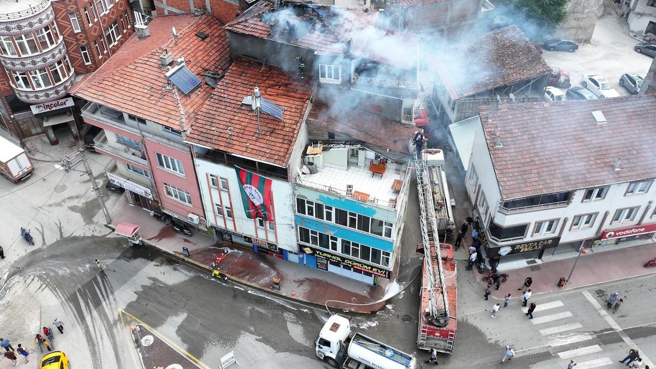Yangın anı ve söndürme çalışmaları ise drone ile havadan görüntülendi.