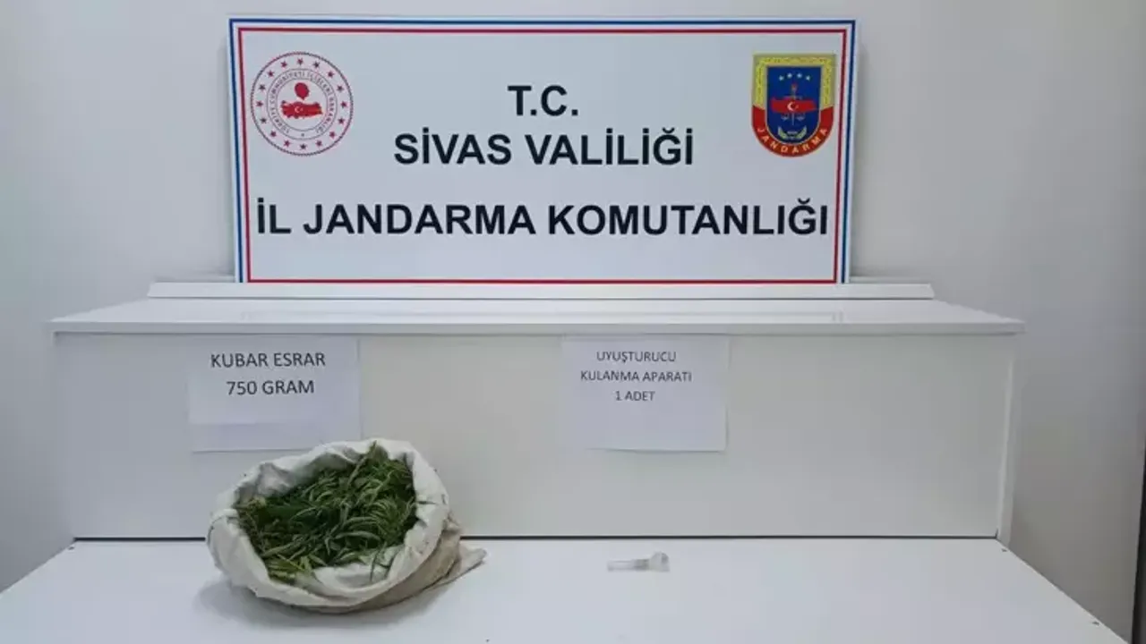 Gürün ilçesindeki diğer operasyonda ise 750 gram kubar esrar ile bir uyuşturucu kullanma aparatı bulundu.