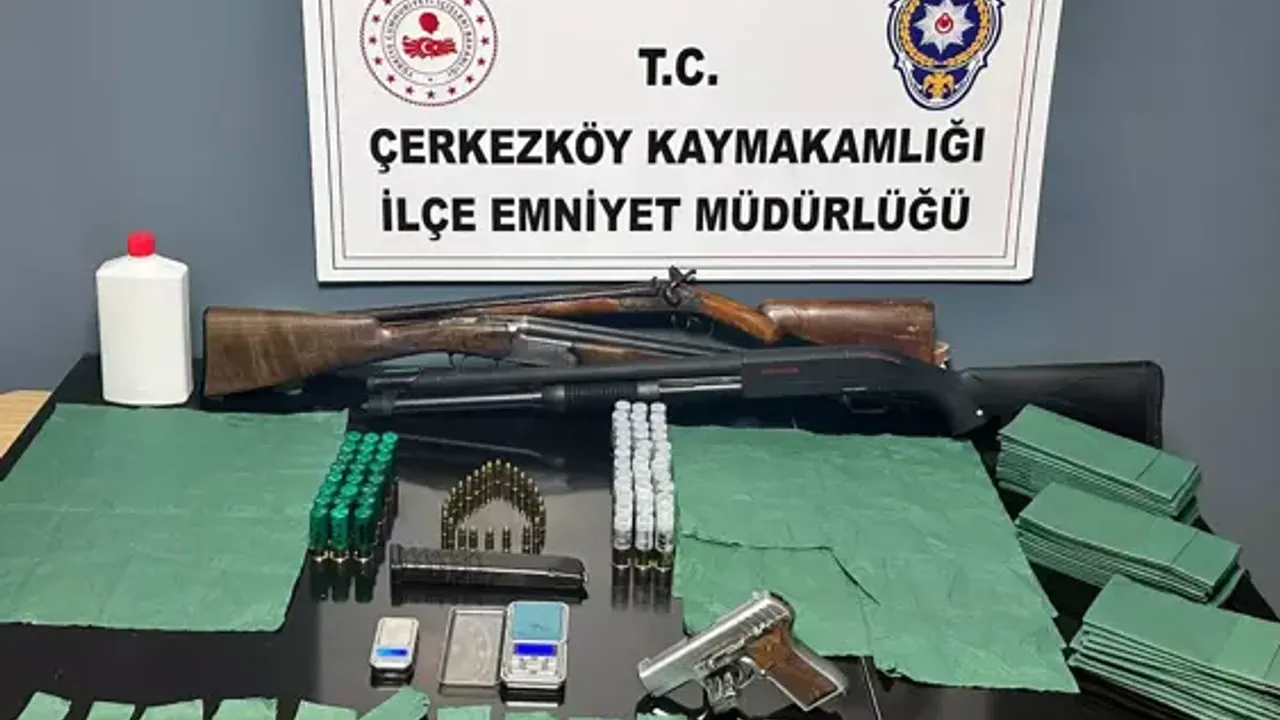Çerkezköy’deki 3 farklı ikamette yapılan aramalarda; 63 adet av tüfeği fişeği, 26 adet uzatmalı şarjör içerisinde 9 milimetre fişek ve 3 adet av tüfeği ele geçirildi. Kapaklı’da Y.C.'nin kaldığı evde yapılan aramada ise, peçeteye emdirilmiş 18 adet sentetik uyuşturucu madde, 2 hassas terazi ve 1 kutu aseton bulundu. Aynı evin sahibi olduğu belirlenen U.T.’nin üzerinde de satışa hazır halde 12 adet sentetik uyuşturucu madde ele geçirildi.