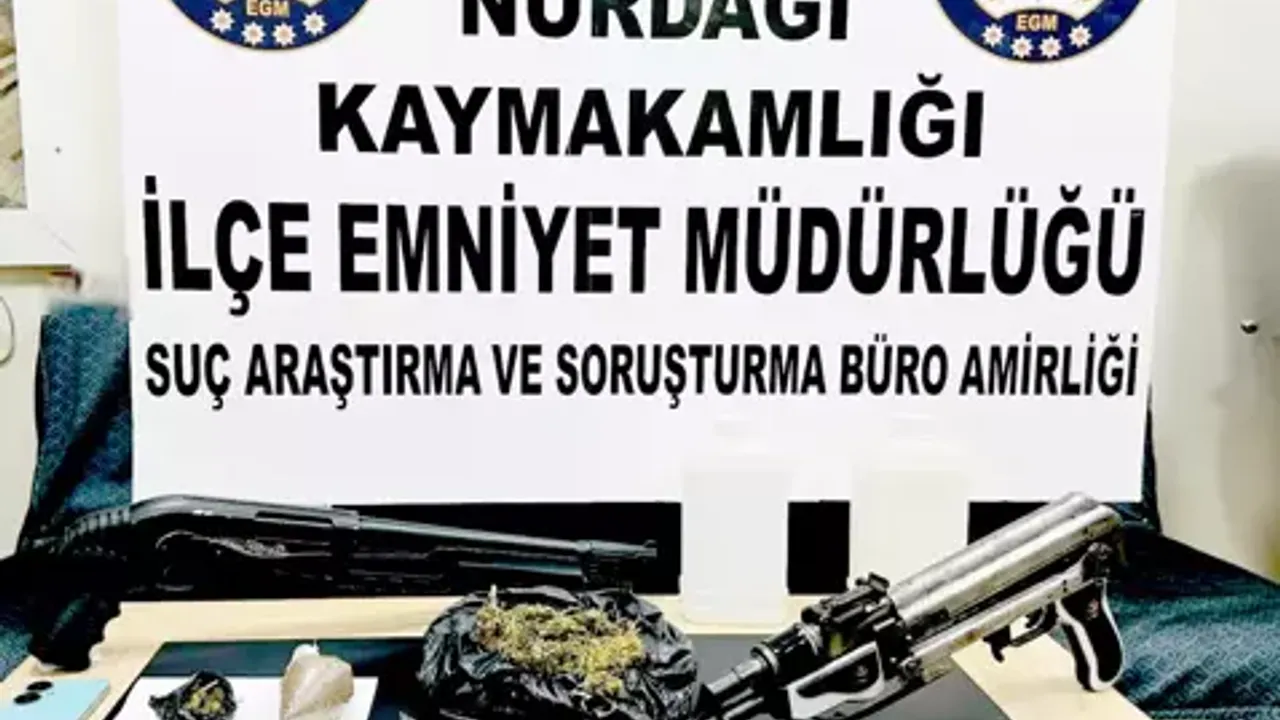 Nurdağı İlçe Emniyet Müdürlüğü ekipleri, uyuşturucu ve silah ticareti yaptığı tespit edilen bir şüpheliyi teknik ve fiziki takibe aldı. Elde edilen bulguların ardından belirlenen adrese operasyon düzenlendi.