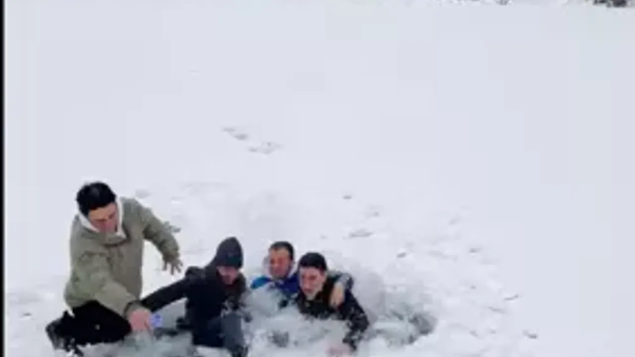 Olayı anlatan Avukat Tarık Buğra Kaycı, “Göl tamamen buzla kaplıydı. Kıyıdan uzakta olmadığımızı düşündük, bu yüzden fazla endişelenmedik. Buzun altının bu kadar derin olacağını tahmin etmemiştik. Video çekerken buz kırıldı ve boylu boyunca suya battık. Kimseye bir şey olmadı, güzel bir anı oldu” dedi.