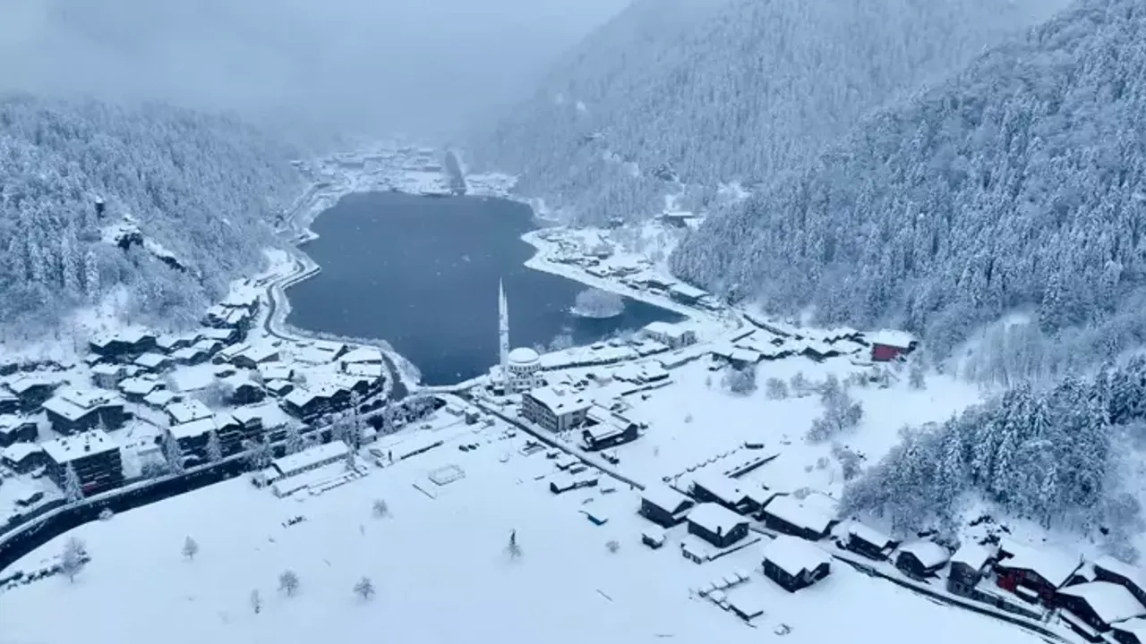 Çaykara ilçesine yaklaşık 20 kilometre mesafede, deniz seviyesinden 1250 metre yükseklikte yer alan Uzungöl, kış mevsimiyle birlikte adeta bir kartpostalı andıran görüntüler oluşturdu. Gölü besleyen dere ve çevresindeki doğa, kar yağışıyla birlikte farklı bir güzellik kazandı. Uzungöl’ün otantik mimarisi, dik yamaçları ve sık orman örtüsü karla birleşince ortaya eşsiz bir manzara çıktı.