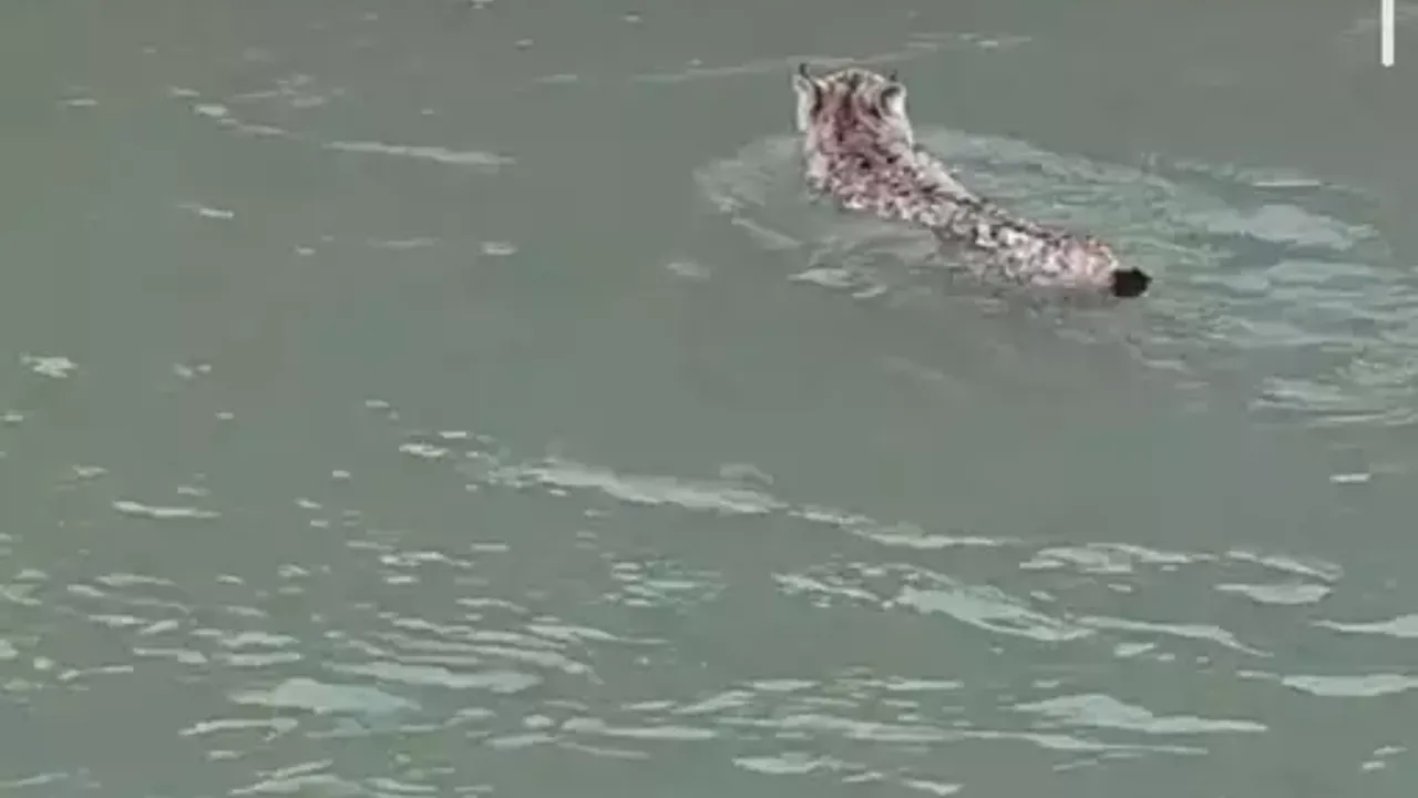 Görüntülerde vaşağın çayın bir kıyısından diğerine doğru dikkatli adımlarla ilerlediği, zaman zaman durarak çevresini kontrol ettiği görülüyor. Soğuk suya rağmen oldukça sakin olduğu gözlenen yaban hayvanı, karşı kıyıya ulaştıktan sonra kısa süreliğine durdu. Ardından hızla gözden kaybolarak bölgedeki kayalık ve çalılık alana doğru ilerledi.