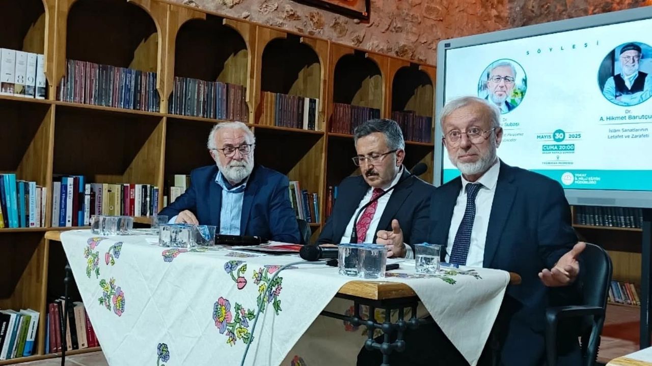 Programın ilk bölümünde Dr. Hikmet Barutçugil, “İslâm Sanatlarının Letafeti ve Zarafeti” başlıklı sunumunda İslam sanatlarının estetik ve ruhani boyutuna değindi. Ardından Prof. Dr. M. Hüsrev Subaşı, “Türk-İslâm Sanat Mirası Üzerine Düşünceler” başlıklı konuşmasında İslam sanatlarının tarihsel gelişimi ve kültürel etkileri üzerine kapsamlı bir değerlendirme yaptı.