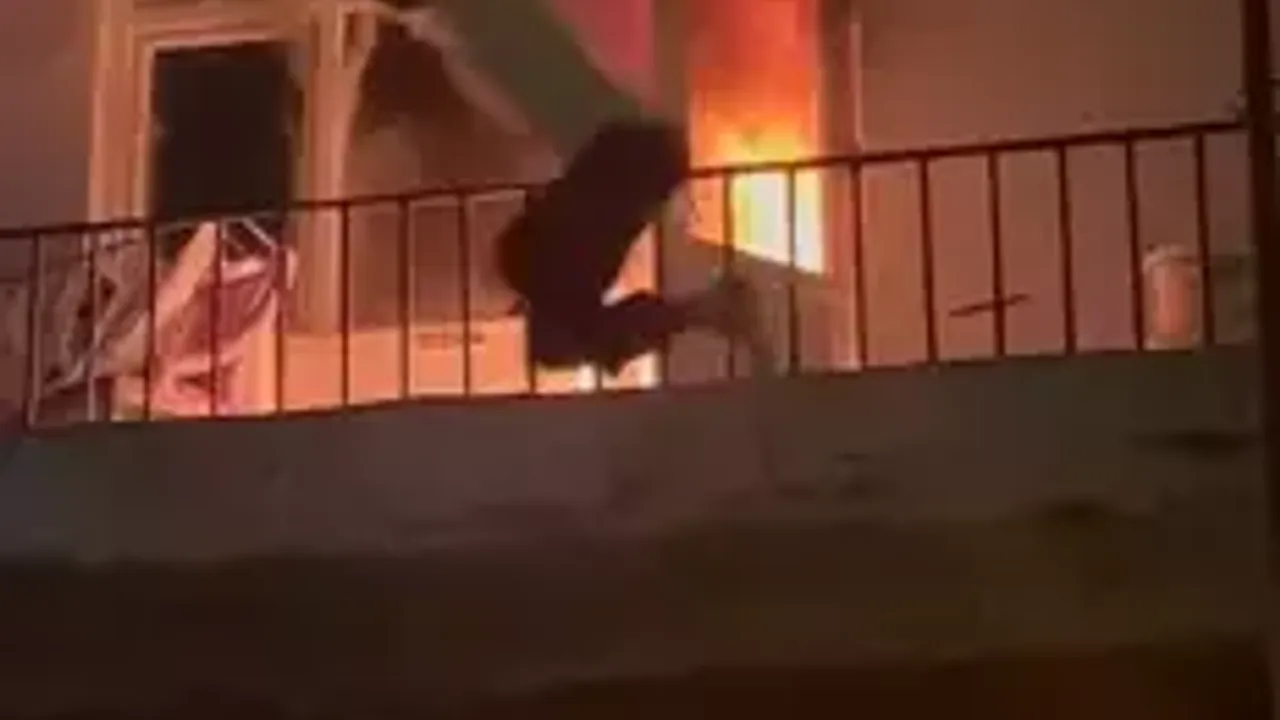 Daireye, yangını söndürmek için giren komşunun, alevler büyüyünce balkondan atladığı anlar cep telefonuyla görüntülendi. Kozluk Mahallesi Aynalıkavak Sokak'taki 5 katlı binanın 1’inci katında, Ozan Uzman'ın yaşadığı dairede, dün gece, henüz belirlenemeyen nedenle yangın çıktı. Mahallelinin ihbarıyla adrese itfaiye, sağlık ve polis ekipleri sevk edildi. Ozan Uzman'ın evinin karşı binasında yaşayan ve ismi öğrenilemeyen komşusu, alevleri söndürmek için daireye girdi. Alevlerin büyümesi üzerine Ozan Uzman evden çıkarken, komşusu ise 1'inci kattaki dairenin balkonundan atladı. İtfaiye ekiplerinin müdahalesiyle yangın söndürüldü. Yangında daire kullanılamaz hale geldi.