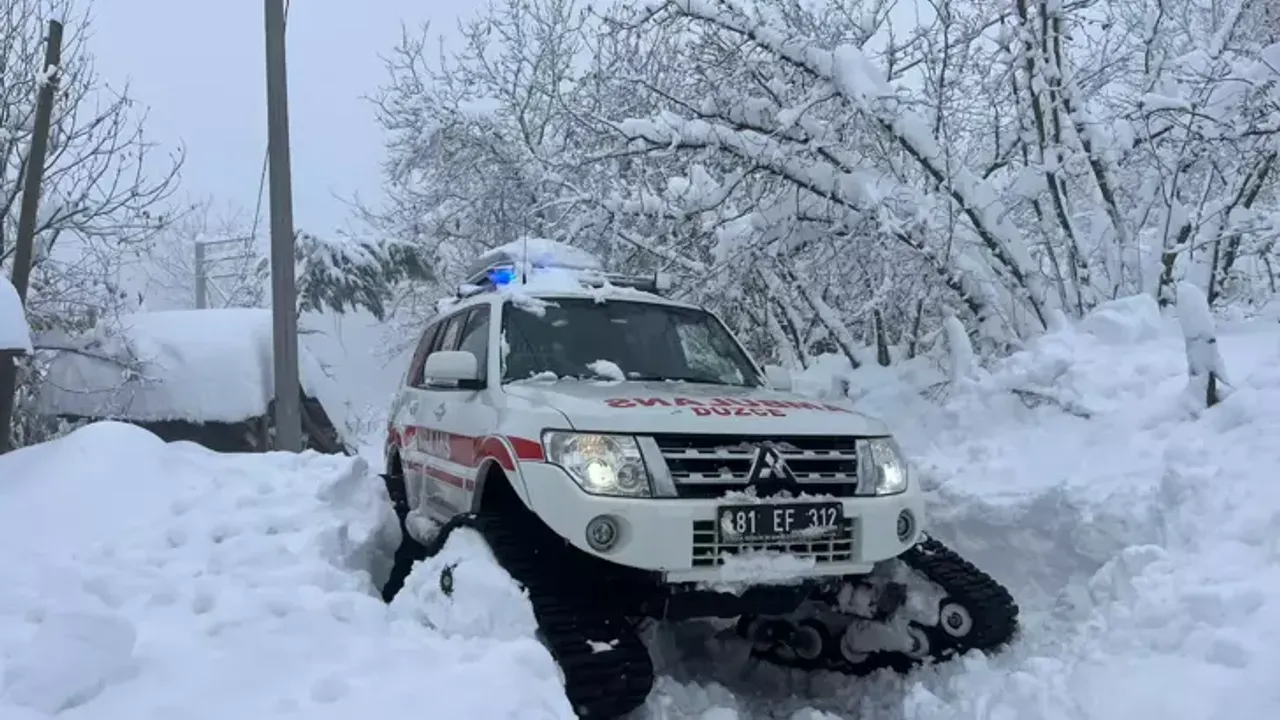 Kar yağışının etkili olduğu Yığılca ilçesine bağlı Tuğrul köyünde, yatalak hasta olan 89 yaşındaki Durdu Baş’ın rahatsızlanması üzerine yakınları 112 Acil Çağrı Merkezi’nden yardım istedi. Köy yolunun yoğun kar nedeniyle kapalı olması sebebiyle, sağlık ekipleri hastaya ulaşmak için paletli ambulansla yola çıktı. Yaklaşık 1 metrelik kar kalınlığına rağmen ilerleyen ekipler, zorlu şartlara rağmen köye ulaşmayı başardı.
